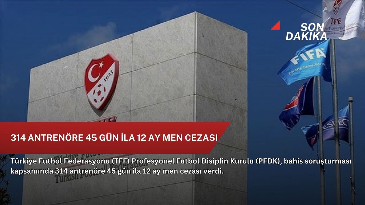 TFF'den yapılan açıklamada, son 5 yılda Süper Lig dışında profesyonel liglerde görev alan 314 antrenörün bahis eylemi nedeniyle 45 gün-12 ay hak mahrumiyeti cezası çarptırıldığı belirtildi.