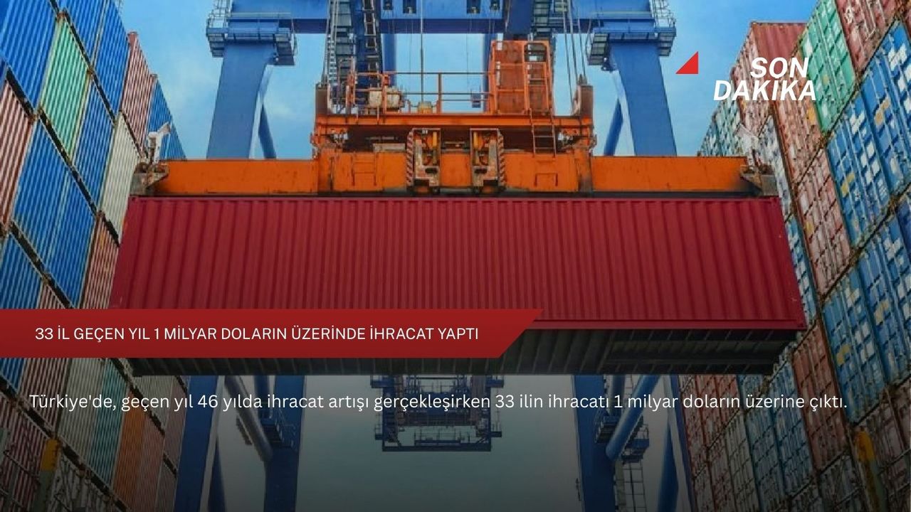 Türkiye'de 2024 yılında 1 milyar doların üzerinde ihracat gerçekleştiren il sayısı 31 olarak kaydedilmişti. Geçen yıl ise Bolu ve Giresun da listeye eklenerek 33 il, 1 milyar doların üzerinde ihracat yaptı, 46 il de ihracatını artırdı.