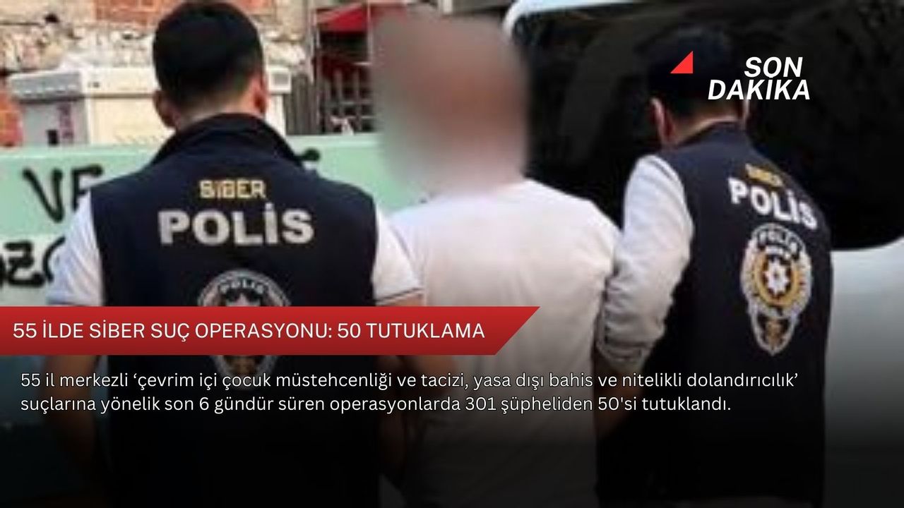 İçişleri Bakanı Ali Yerlikaya, EGM Siber Suçlarla Mücadele Daire Başkanlığı ve MASAK koordinesinde; İl Emniyet Müdürlükleri Siber Suçlarla Mücadele Şube Müdürlüklerince yapılan çalışmalar sonucu 55 ilde ‘çevrim içi çocuk müstehcenliği ve tacizi, yasa dışı bahis ve nitelikli dolandırıcılık’ suçlarına yönelik operasyon düzenlendiğini duyurdu.