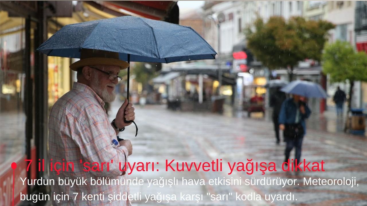 Meteoroloji Genel Müdürlüğü, kuvvetli yağışa karşı 7 kente "sarı" kod uyarısında bulundu.