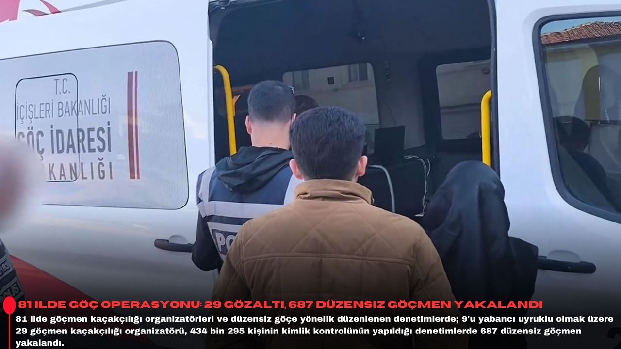 Denetimlerde 9'u yabancı uyruklu olmak üzere 29 göçmen kaçakçılığı organizatörü, 434 bin 295 kişinin kimlik kontrolünün yapıldığı denetimlerde 687 düzensiz göçmen yakalandı. Tespit edilen düzensiz göçmenlerin ülkelerine geri gönderilme işlemleri başlatıldı.