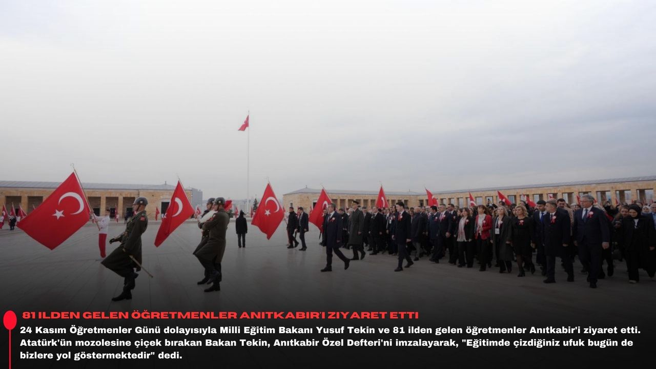 Tekin başkanlığındaki Bakanlık bürokratları ile öğretmenlerden oluşan heyet, Aslanlı Yol'dan yürüyerek Büyük Önder Gazi Mustafa Kemal Atatürk'ün mozolesine geldi.