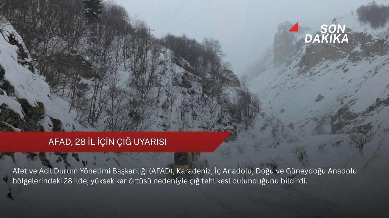 Açıklamada, Meteoroloji Genel Müdürlüğünden alınan son bilgiler doğrultusunda, Karadeniz Bölgesi'nde Düzce, Bolu, Zonguldak, Bartın, Karabük, Kastamonu, Ordu, Giresun, Trabzon, Rize, Artvin, Tokat, Gümüşhane ve Bayburt, İç Anadolu Bölgesi'nde Sivas, Doğu Anadolu Bölgesi'nde Erzincan, Tunceli, Bingöl, Erzurum, Muş, Bitlis, Ardahan, Kars, Ağrı, Van ve Hakkari ile Güneydoğu Anadolu Bölgesi'nde Siirt ve Şırnak'ta yüksek kar örtüsü bulunan eğimli ve dik yamaçlarda çığ tehlikesinin bulunduğu bildirildi.