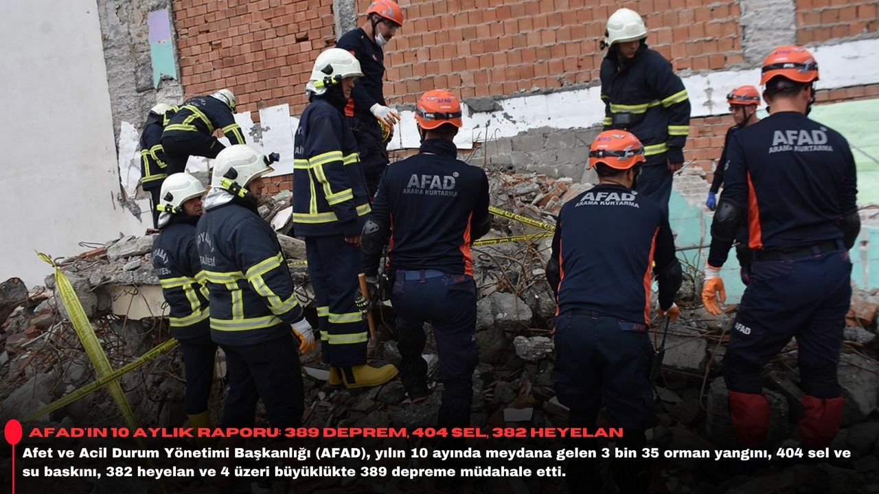 İçişleri Bakanlığı 2026 Bütçe Sunumu'ndan derlenen bilgilere göre, yılın 10 ayında 3 bin 35 orman yangını, 404 sel ve su baskını, 382 heyelan ve 4 üzeri büyüklükte 389 deprem meydana geldi.