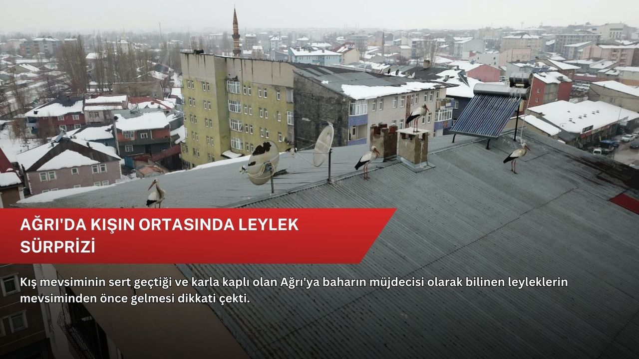 8 leylekten oluşan sürü, Eski Van Caddesi'nde bulunan yüksek katlı bir binanın çatısına kondu. Leylekler, dronla görüntülendi.