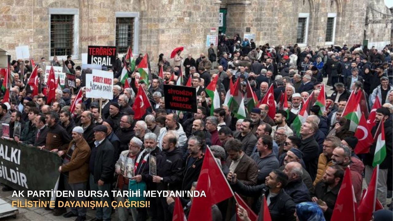 Bursa’da Cuma namazı sonrasında tarihi Ulu Cami önünde bir araya gelen vatandaşlar, Filistin’de yaşanan insani dram karşısında sessiz kalmayarak güçlü bir dayanışma sergiledi. Etkinlik boyunca, bölgede devam eden insani duruma dikkat çekilerek Filistin halkının yalnız olmadığı ve Bursalıların her zaman yanlarında olduğu vurgulandı.