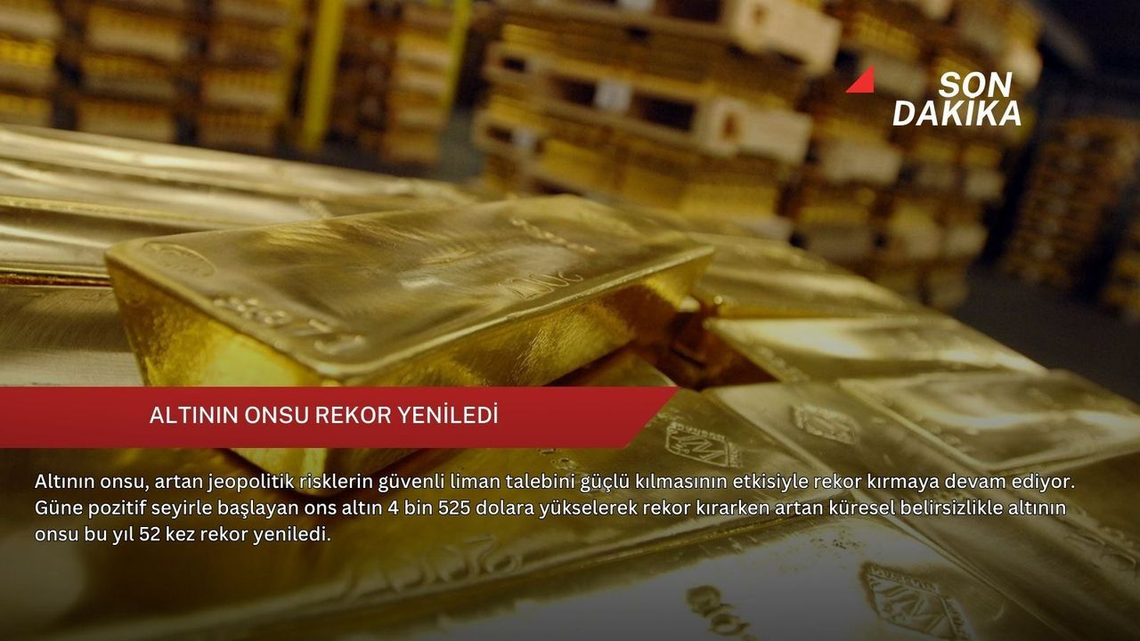 Jeopolitik risklerin artmasının yanı sıra ABD Merkez Bankasının (Fed) faiz oranlarında yeni indirimler yapılacağına işaret eden ekonomik verilerinin etkisiyle altının onsu salı akşamı ilk kez 4 bin 500 doların üzerine çıktı. Güne pozitif seyirle başlayan ons altın 4 bin 525 dolara yükselerek rekor kırdı. Böylece, artan küresel belirsizlikle altının onsu bu yıl 52 kez rekor yeniledi.