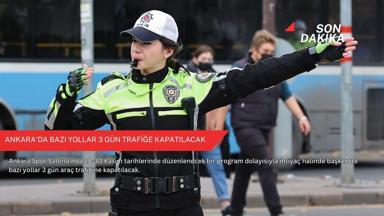 Ankara Emniyet Müdürlüğünden yapılan açıklamaya göre, 28, 29 ve 30 Kasım'da Ankara Spor Salonu'nda gerçekleştirilecek program nedeniyle ihtiyaç duyulması halinde bugün saat 21.00'den itibaren program sona erene kadar bazı yollarda taşıt trafiğine izin verilmeyecek.