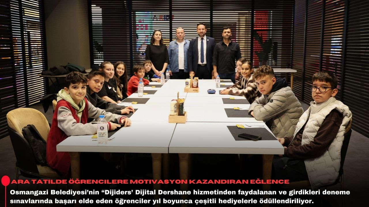 Osmangazi Belediyesi'nin 8 ve 12'nci sınıf öğrencileri ile mezuna kalan öğrencilerin Milli Eğitim Bakanlığı müfredatına uygun şekilde ücretsiz dijital eğitim alabilmesi için hayata geçirdiği dijiders projesiyle sınavlara hazırlanan öğrenciler, geçtiğimiz dönem LGS ve YKS'de büyük başarı elde etti. “Dijiders’ Dijital Dershaneye bu yılda Osmangazi’de eğitim gören öğrenciler büyük ilgi gösterdi. Dijiders programına katılan öğrencilere dönem boyunca ek ödevler ve geniş soru bankası sunularak sınavlara en iyi şekilde hazırlanmaları sağlanıyor. Öğrencilere ayrıca 2 haftada bir yapılan deneme sınavlarıyla kendilerini geliştirme imkanı sunuluyor. 2 haftada bir düzenlenen deneme sınavlarında başarı gösteren öğrenciler Osmangazi Belediyesi tarafından eğlence merkezlerine götürülerek gün boyunca eğlence dolu bir geçirmeleri sağlanarak ödüllendiriliyor. Son yapılan deneme sınavında başarı elde eden 8 sınıf öğrencileri ara tatil döneminde bir eğlence merkezine götürüldü. Başarılı öğrenciler burada çeşitli aktivitelere katılarak unutamayacakları bir gün geçirdi.