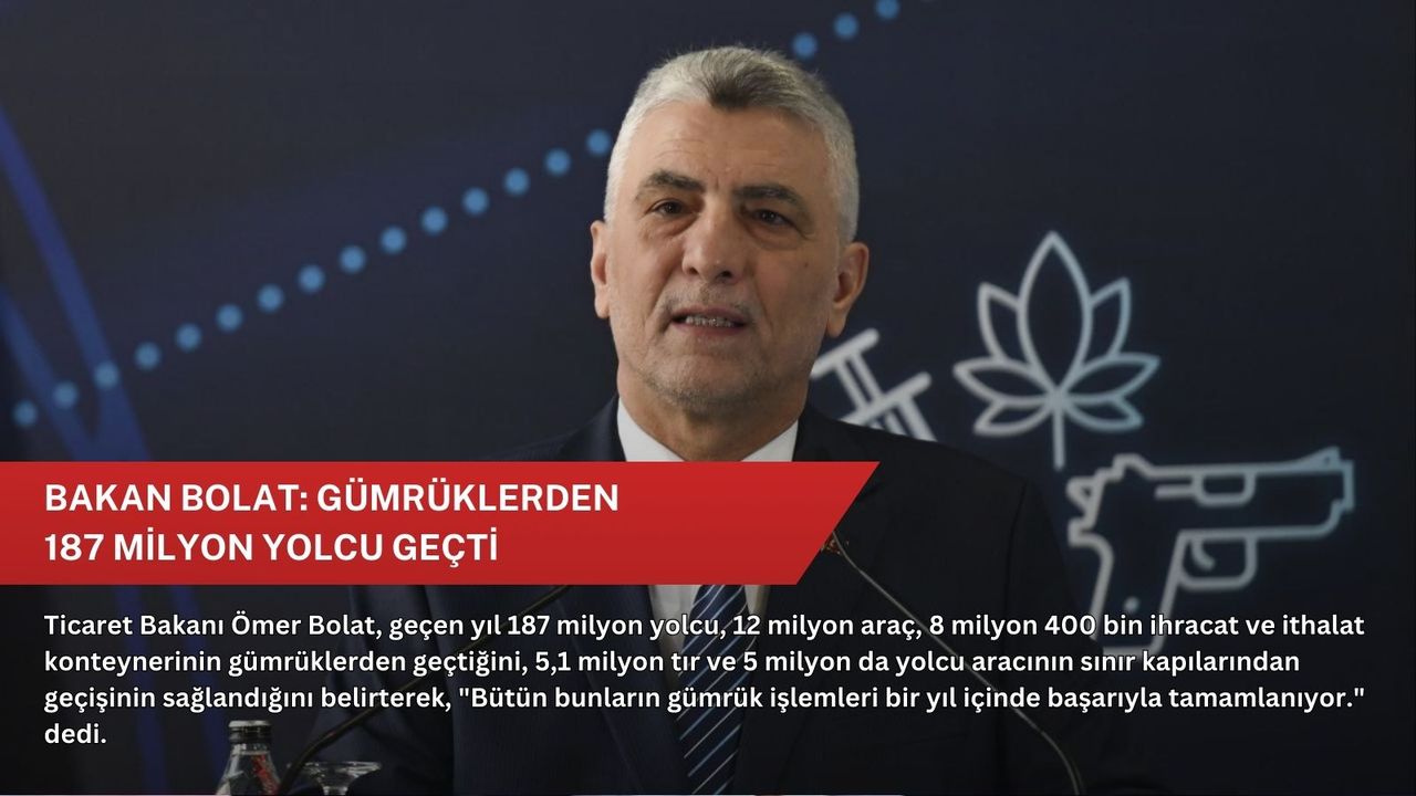Bakanlık bünyesinde çalışanların yüzde 75'inin gümrük personelinden oluştuğuna işaret eden Bolat, şu bilgileri paylaştı: