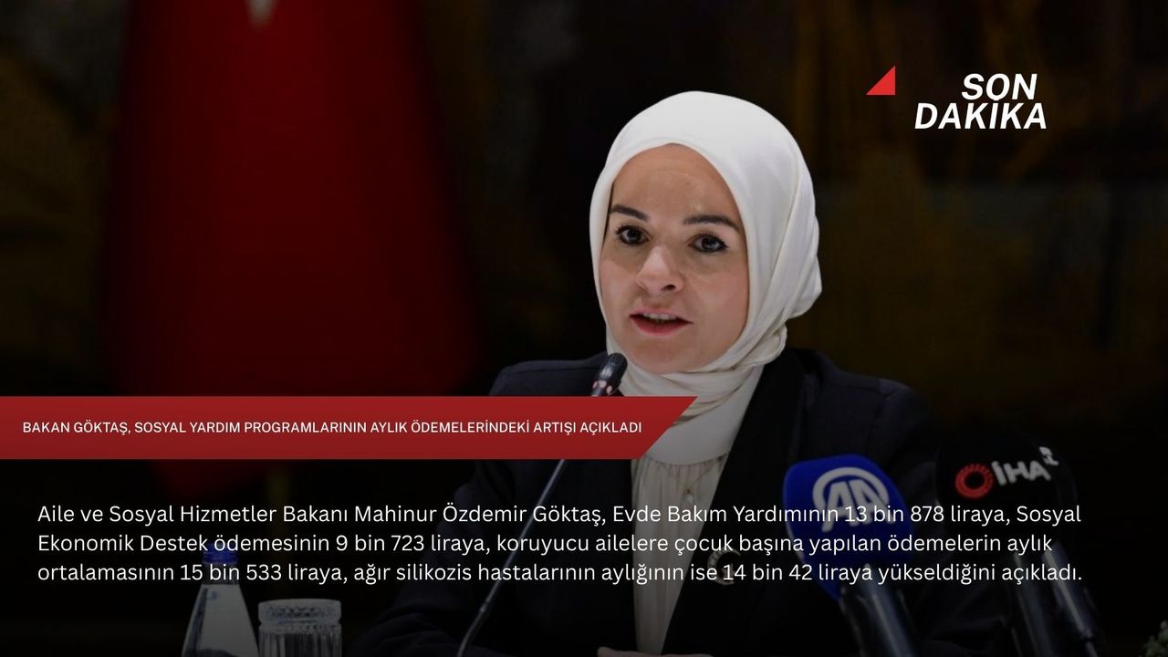 Aile ve Sosyal Hizmetler Bakanı Göktaş, ocak ayı memur maaş katsayısında yapılan yeni düzenlemeyle birlikte, toplumun dezavantajlı kesimlerine yönelik uygulanan sosyal yardım programlarının aylık ödemelerinde artışa gidildiğini açıkladı.