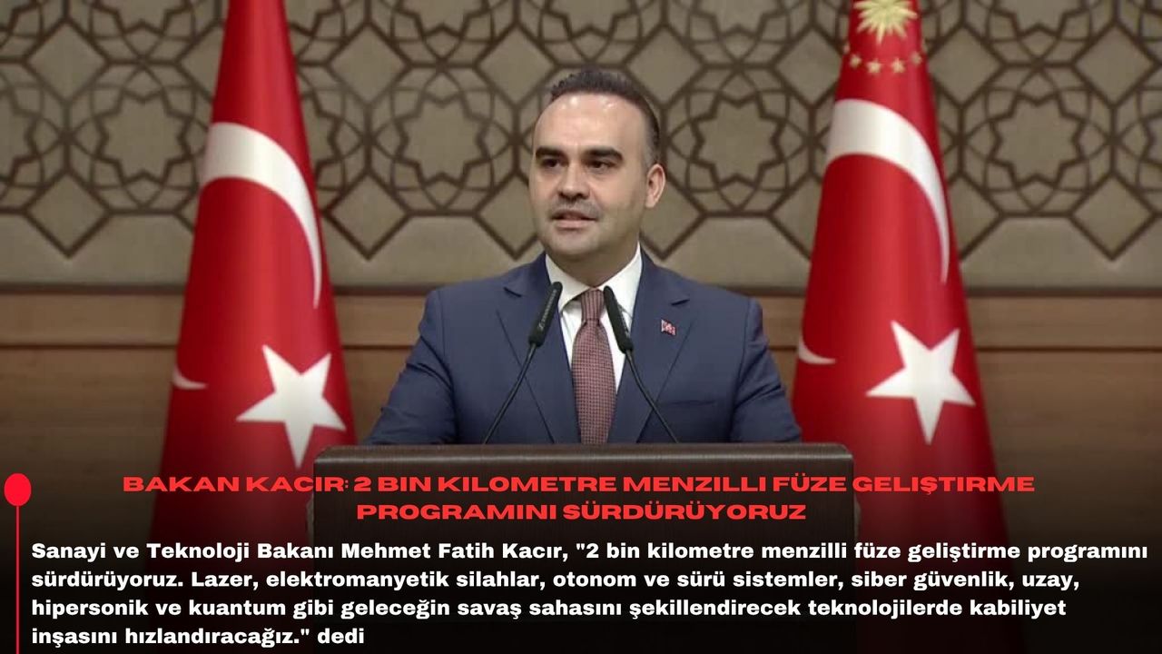 "TÜBİTAK SAGE'nin ısıl pil üretim kapasitesini 2 katına çıkarıyoruz. Milli Ramjet Motorlu ve Uzun Menzilli Hava-Hava Füzesi GÖKHAN üretime geçtiğinde NATO envanterinde yer alan en uzun menzilli hava-hava füzelerinden biri olacak. GÖKDOĞAN, BOZDOĞAN, GÖKHAN hava-hava füzelerimiz ve SOM-J seyir füzemizin milli muharip uçağımız KAAN'ın dahili istasyonlarına entegrasyon çalışmalarını yürütüyoruz. KIZILELMA ve ANKA-3 ile insansız hava araçlarına hava-hava angajman kabiliyeti kazandıran sayılı ülkelerden olacağız. Balistik füzemiz TAYFUN'un test atışlarına devam ediyoruz. 2 bin kilometre menzilli füze geliştirme programını sürdürüyoruz. Lazer, elektromanyetik silahlar, otonom ve sürü sistemler, siber güvenlik, uzay, hipersonik ve kuantum gibi geleceğin savaş sahasını şekillendirecek teknolojilerde kabiliyet inşasını hızlandıracağız. Caydırıcılığımızı en üst seviyeye yükselteceğiz."