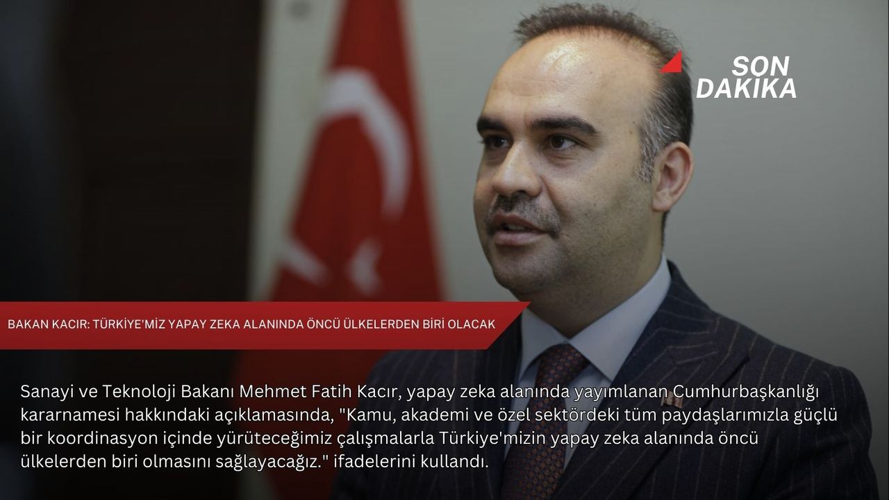 Kararnamedeki düzenlemelerle, yapay zeka altyapı ve ekosisteminin gelişimi için önemli adımlar atıldığını vurgulayan Kacır, "Sanayi ve Teknoloji Bakanlığımızda Milli Teknoloji Genel Müdürlüğü bugünden itibaren 'Milli Teknoloji ve Yapay Zeka Genel Müdürlüğü' olarak çalışmalarını sürdürecek. Bu kapsamda, ülkemizdeki veri merkezi ve bulut bilişim altyapısını geliştirecek, bu alanda politika önerileri ve stratejiler oluşturacak ve uygulayacak, veri merkezlerine ilişkin kriterler ve standartlar belirleyecek, belgelendirme ve yetkilendirmeye yönelik düzenlemeler yapacak." ifadelerini kullandı.