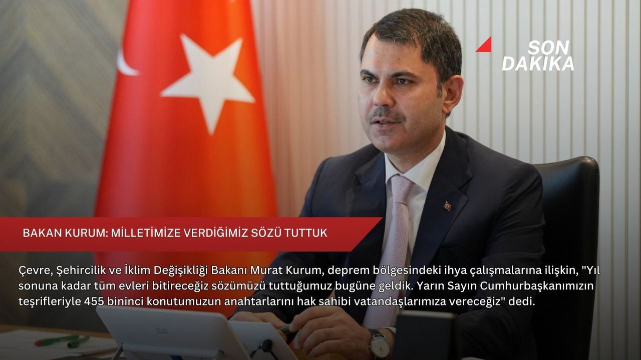Deprem bölgesinde verdikleri "yıl sonuna kadar konutların teslimi" sözünü hatırlatan Bakan Kurum, gelinen noktada büyük bir aşama kaydedildiğini belirtti.