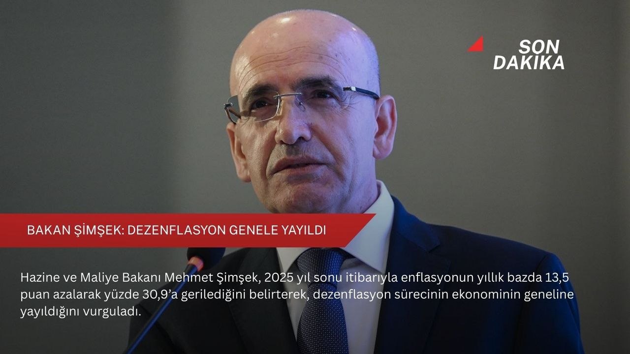 2025 yılının dezenflasyon açısından kritik bir eşik olduğunu kaydeden Şimşek, yıllık enflasyonun bir önceki yıla göre 13,5 puanlık bir düşüşle yüzde 30,9 seviyesinde gerçekleştiğini ifade etti.