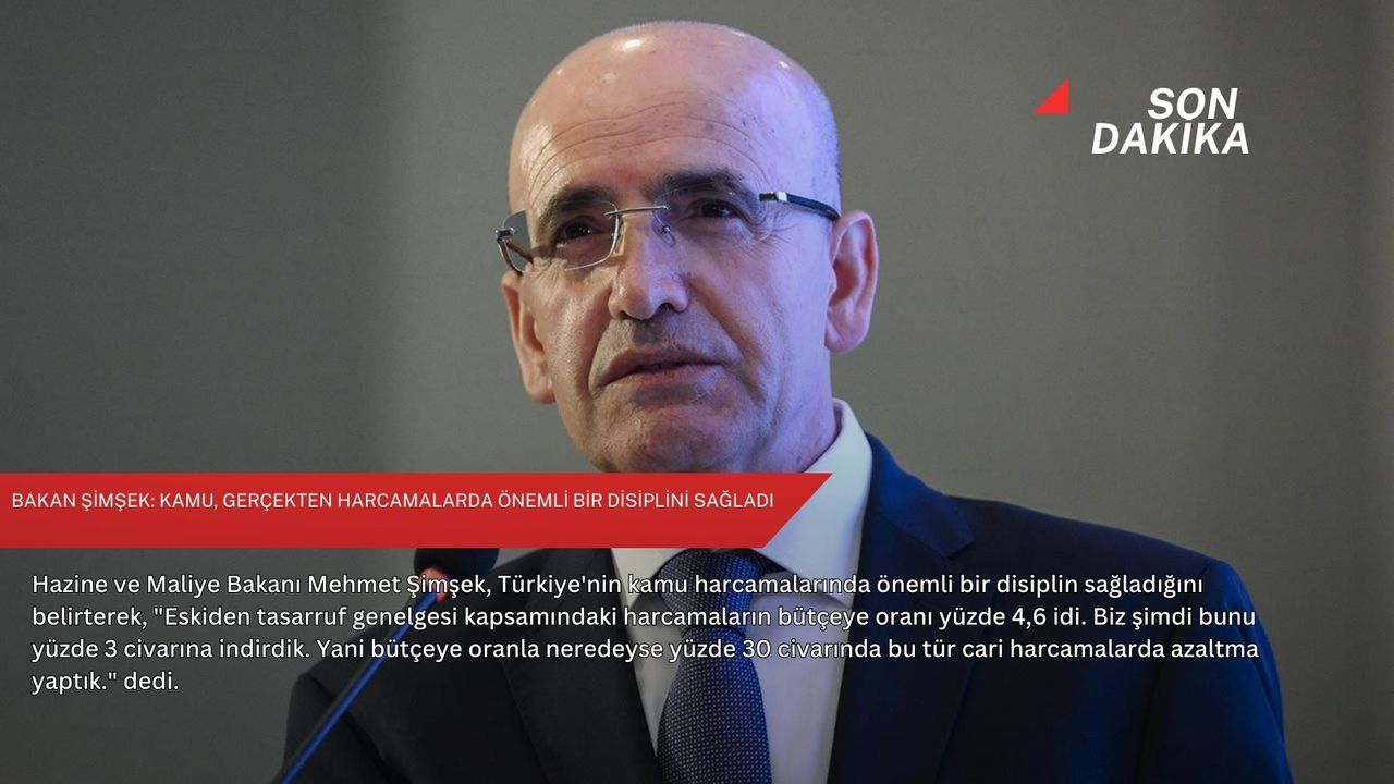 Deprem bölgesinde yaklaşık 600 bin konutun 350 bininin tamamlandığını ve yine özellikle kira enflasyonunu aşağı çekmek için 500 bin sosyal konut inşa edileceğini anımsatan Şimşek, "Kamu, gerçekten harcamalarda önemli bir disiplini sağladı. Özellikle tasarruf genelgesi kapsamındaki harcamalar vatandaşımızın talebiydi. Eskiden tasarruf genelgesi kapsamındaki harcamaların bütçeye oranı yüzde 4,6 idi." diyerek şunlara dikkati çekti: