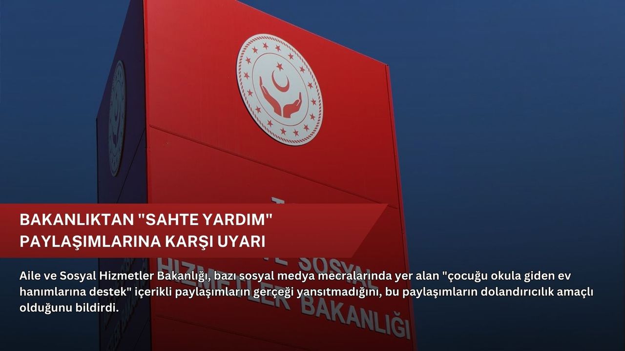 Bakanlıktan yapılan açıklamada, son günlerde sosyal medya platformlarında Bakanlık adıyla "Çocuğu okula giden ev hanımlarına destek" başlığı altında asılsız paylaşımlar yapıldığı tespit edildiği belirtildi.