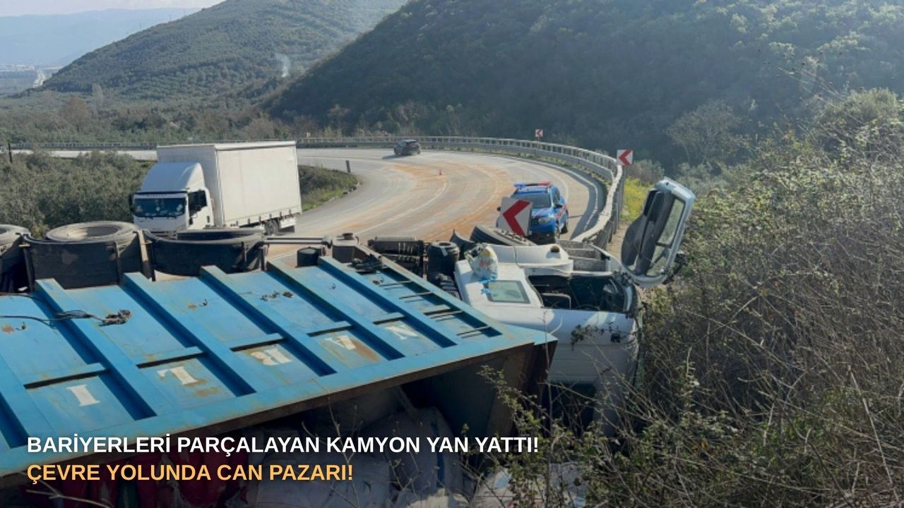 Yenişehir-İznik çevre yolu üzerinde seyir halinde olan cam elyaf yüklü kamyon, sürücüsünün direksiyon hakimiyetini kaybetmesi üzerine kontrolden çıktı. Savrulan araç, yol kenarındaki bariyerleri de parçalayarak yol kenarına devrildi.