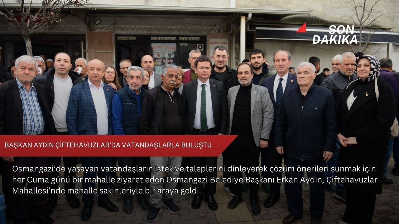 Osmangazi’ye daha iyi hizmet için vatandaşlarla birebir temas kuran Osmangazi Belediye Başkanı Erkan Aydın, bu kez Çiftehavuzlar Mahallesi’nde bölge halkıyla buluştu. Cuma namazını Armutlu Camii’nde kılan Başkan Aydın’a, belediye başkan yardımcıları, meclis üyeleri, muhtarlar ve vatandaşlar eşlik etti.