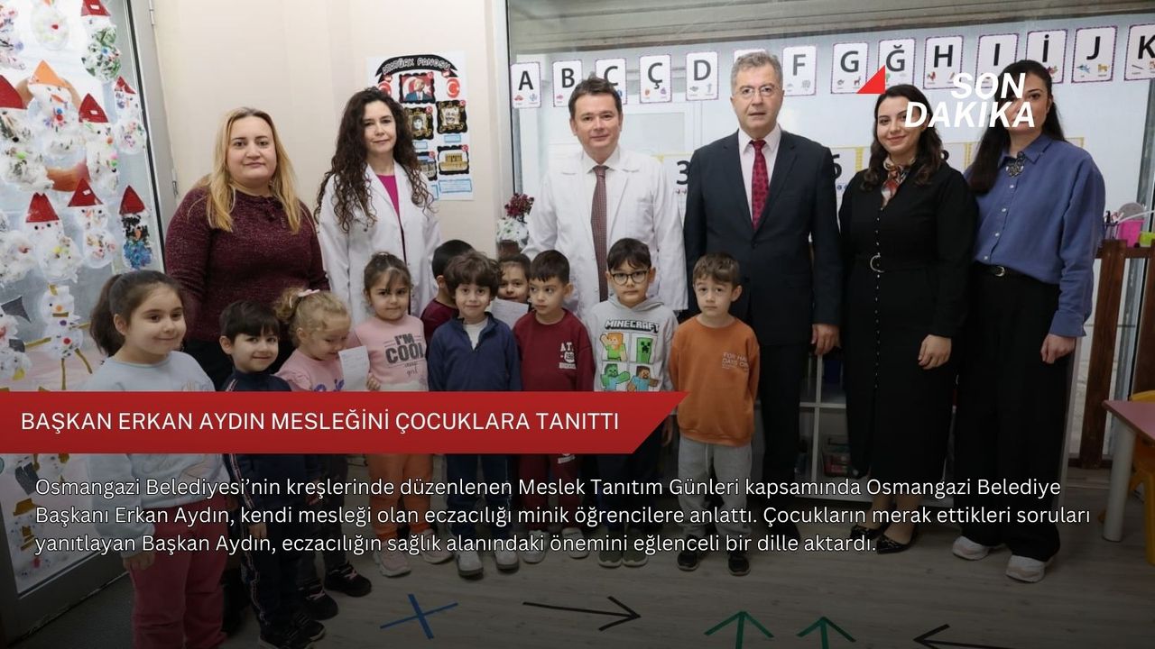Çocuklara küçük yaşlarda farklı meslekleri tanıtarak onların gelecekte daha bilinçli seçimler yapmasını amaçlayan Osmangazi Belediyesi, Meslek Tanıtım Günleri ile minikleri uzmanlarla buluşturmaya devam ediyor. Etkinliğin bu haftaki konuğu olan Osmangazi Belediye Başkanı Erkan Aydın, Minik Kalpler Kreş ve Gündüz Bakım Evleri’nde öğrenim gören öğrencilerle bir araya gelerek, kendi mesleği olan eczacılığı tüm incelikleriyle anlattı. Program kapsamında Başkan Aydın’a, mesleği veterinerlik olan Osmangazi Belediye Başkan Yardımcısı Mücahit Yıldızhan ile mesleği doktorluk olan Sosyal Destek Hizmetleri Müdürü Sevcan Yaman da eşlik ederek, etkinliğe ayrı bir zenginlik kattı. Tanıtım günlerinde hayvan sevgisini artırmak amacıyla kreşe getirilen sevimli kedi ise miniklere keyifli anlar yaşattı.
