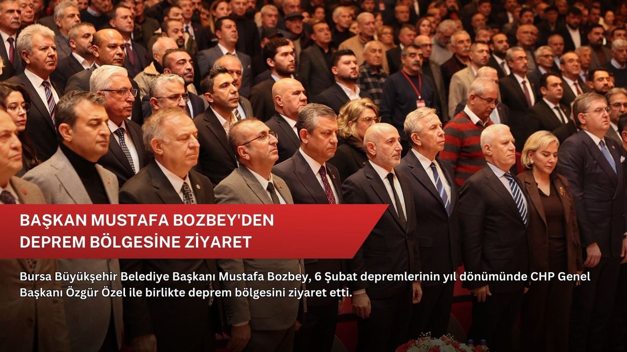 Bursa Büyükşehir Belediye Başkanı Mustafa Bozbey, Cumhuriyet Halk Partisi tarafından 6 Şubat depremlerinin yıl dönümü dolayısıyla deprem bölgesinde düzenlenen anma programları kapsamında Kahramanmaraş’ı ziyaret etti.
