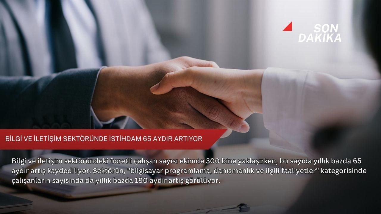 Dijitalleşmenin ve teknoloji kullanımının yaygınlaşmasıyla bilgi ve iletişim sektöründeki ücretli çalışan sayısı ekimde 300 bine yaklaşırken, bu sayıda yıllık bazda 65 aydır artış kaydediliyor.