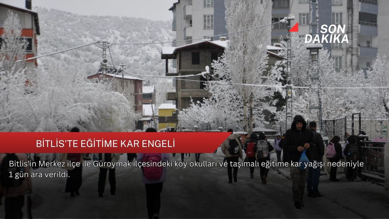 Olumsuz hava koşulları sebebiyle Bitlis Merkez ilçe ile Güroymak ilçesinde köy okulları ve taşımalı eğitime 1 gün süreyle ara verildiği belirtildi.