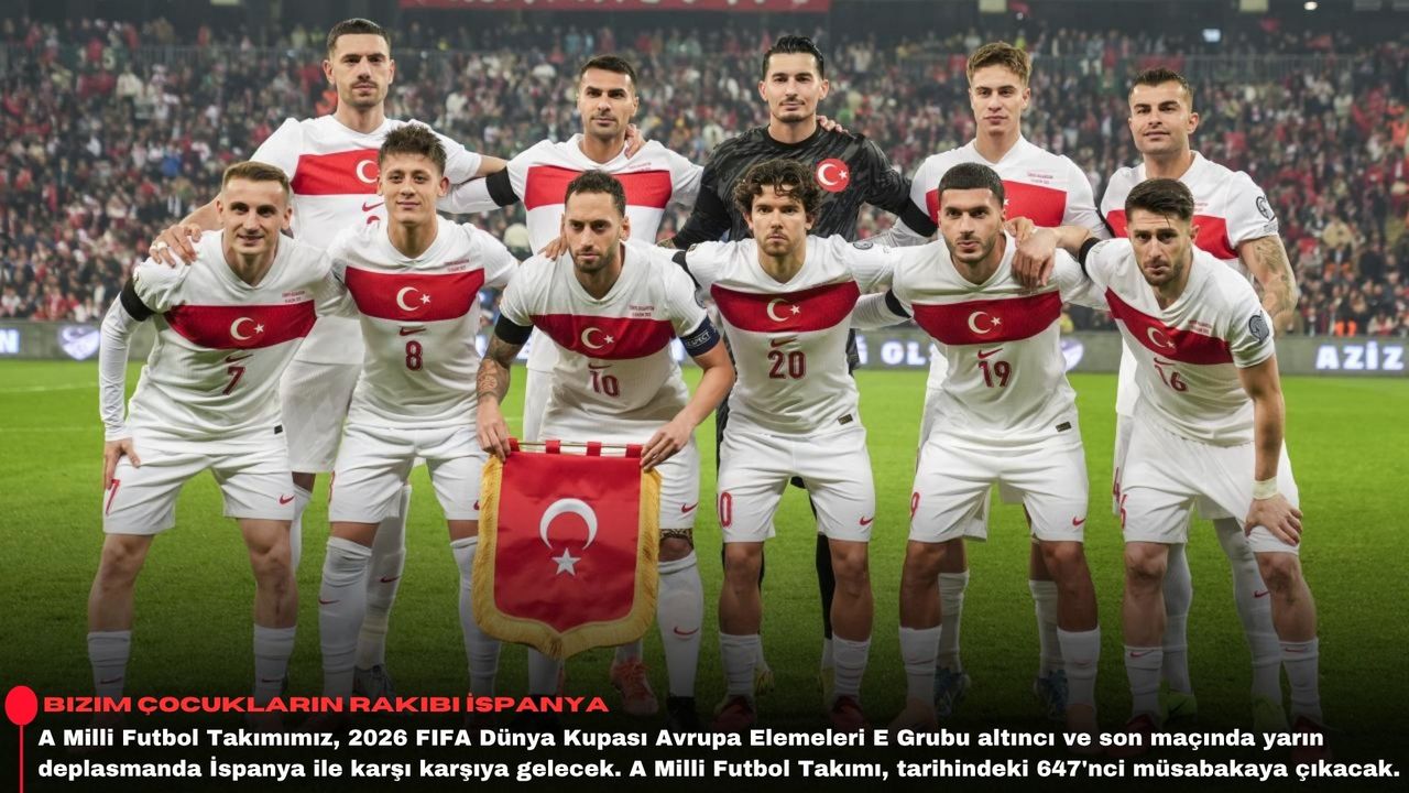 A Milli Futbol Takımımız, 2026 FIFA Dünya Kupası Avrupa Elemeleri E Grubu altıncı ve son maçında yarın İspanya'ya konuk olacak.