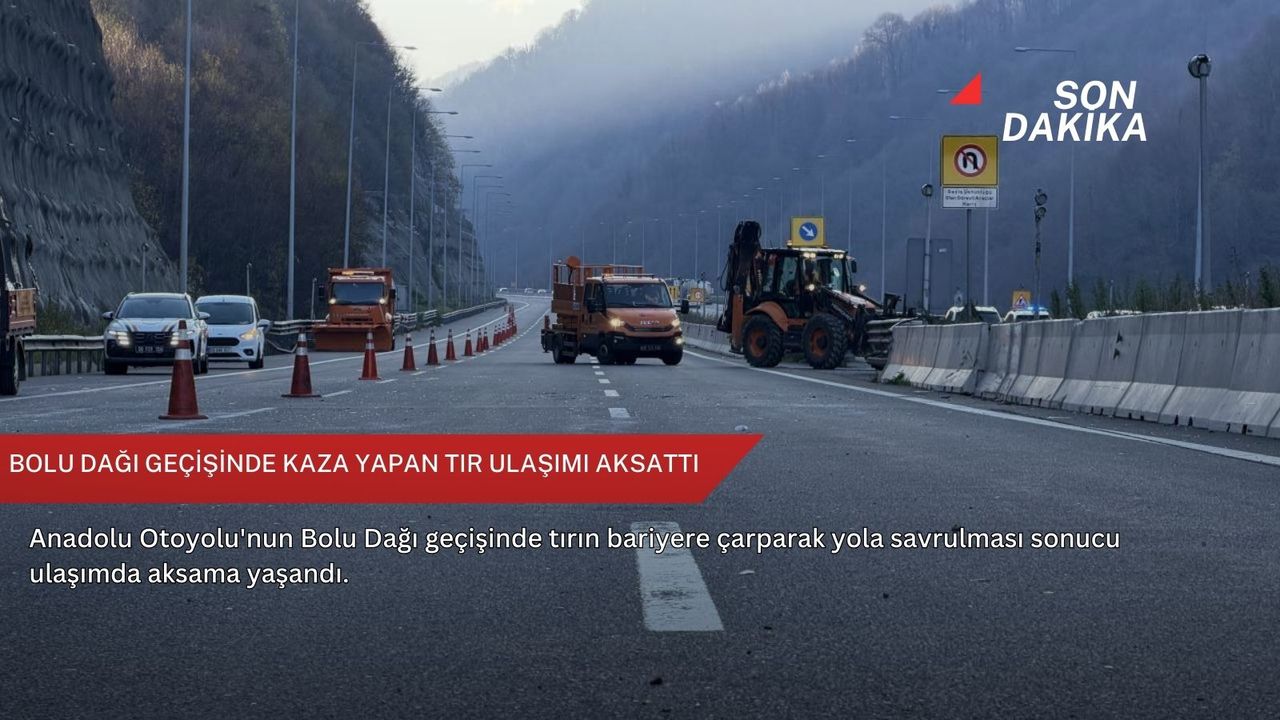Otoyolda İstanbul istikametine seyreden S.Ö. idaresindeki gazlı içecek taşıyan tır, 2. viyadük üzerinde sürücünün direksiyon hakimiyetini kaybetmesi sonucu bariyere çarparak yola savruldu.