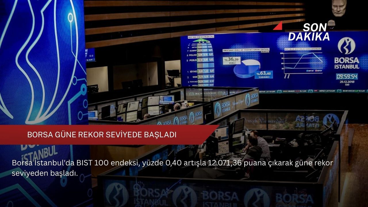 Açılışta BIST 100 endeksi, önceki kapanışa göre 47,57 puan ve yüzde 0,40 artışla 12.071,36 puana çıkarak güne rekor seviyeden başladı. Bankacılık endeksi yüzde 0,28 değer kazanırken, holding endeksi yüzde 0,14 değer kaybetti.