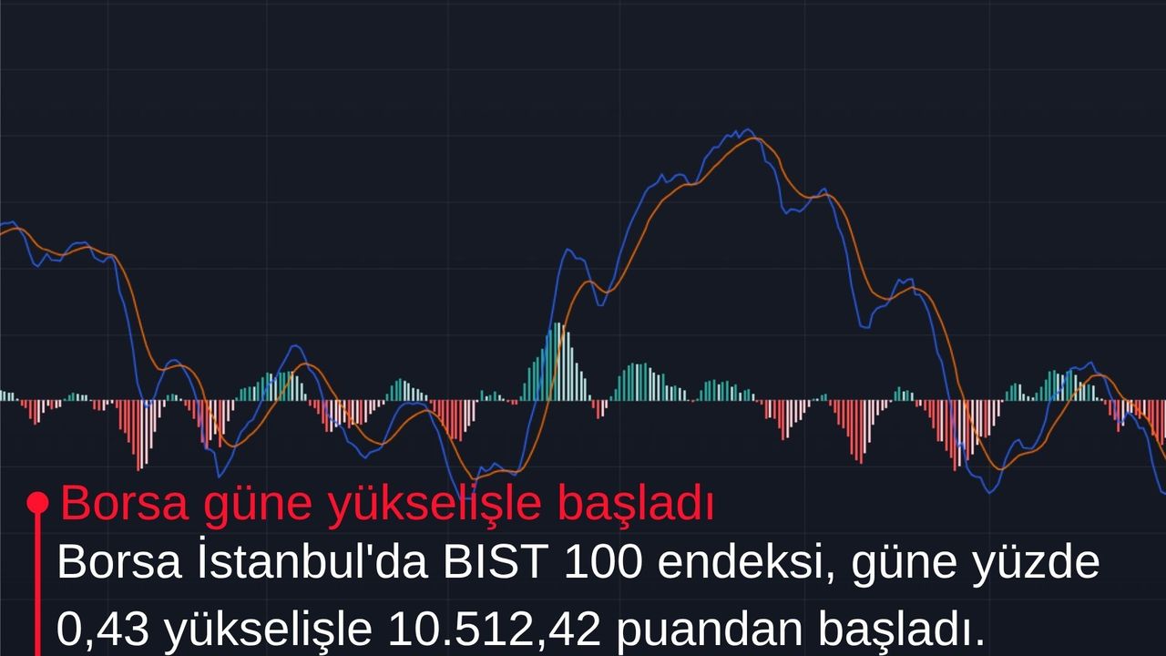 Açılışta BIST 100 endeksi, önceki kapanışa göre 45,23 puan ve yüzde 0,43 artışla 10.512,42 puana çıktı. Bankacılık endeksi yüzde 0,55, holding endeksi yüzde 0,90 yükseldi