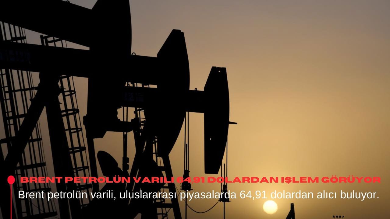 Brent petrolün varil fiyatı, bugün saat 10.04 itibarıyla yüzde 0,52 azalarak 64,91 dolar oldu. Aynı saatte Batı Teksas türü ham petrolün varili 61,21 dolardan işlem gördü.