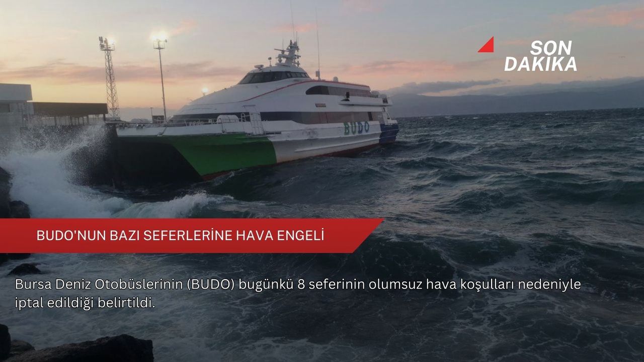 BUDO'nun internet sitesindeki duyuruya göre, saat 09.30'daki Bursa (Mudanya)-İstanbul (Eminönü/Sirkeci), 11.30'daki İstanbul (Eminönü/Sirkeci)-Bursa (Mudanya) seferleri gerçekleştirilemeyecek.