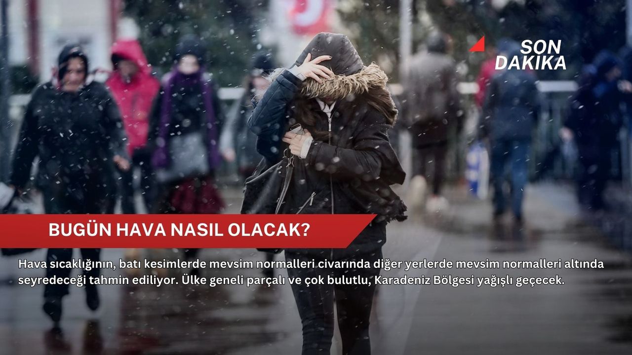 Meteoroloji Genel Müdürlüğü tarafından yapılan tahminlere göre, yurdun kuzey, iç ve doğu kesimlerinin parçalı ve çok bulutlu, Düzce, Zonguldak, Bartın, Sinop ve Samsun çevrelerinin yağmurlu, Batı Karadeniz’in iç kesimleri, Orta ve Doğu Karadeniz ile Çankırı, Sivas, Nevşehir, Erzincan, Şırnak, Van ve Hakkari çevrelerinin karla karışık yağmur ve kar yağışlı, diğer yerlerin az bulutlu ve açık geçeceği tahmin ediliyor.