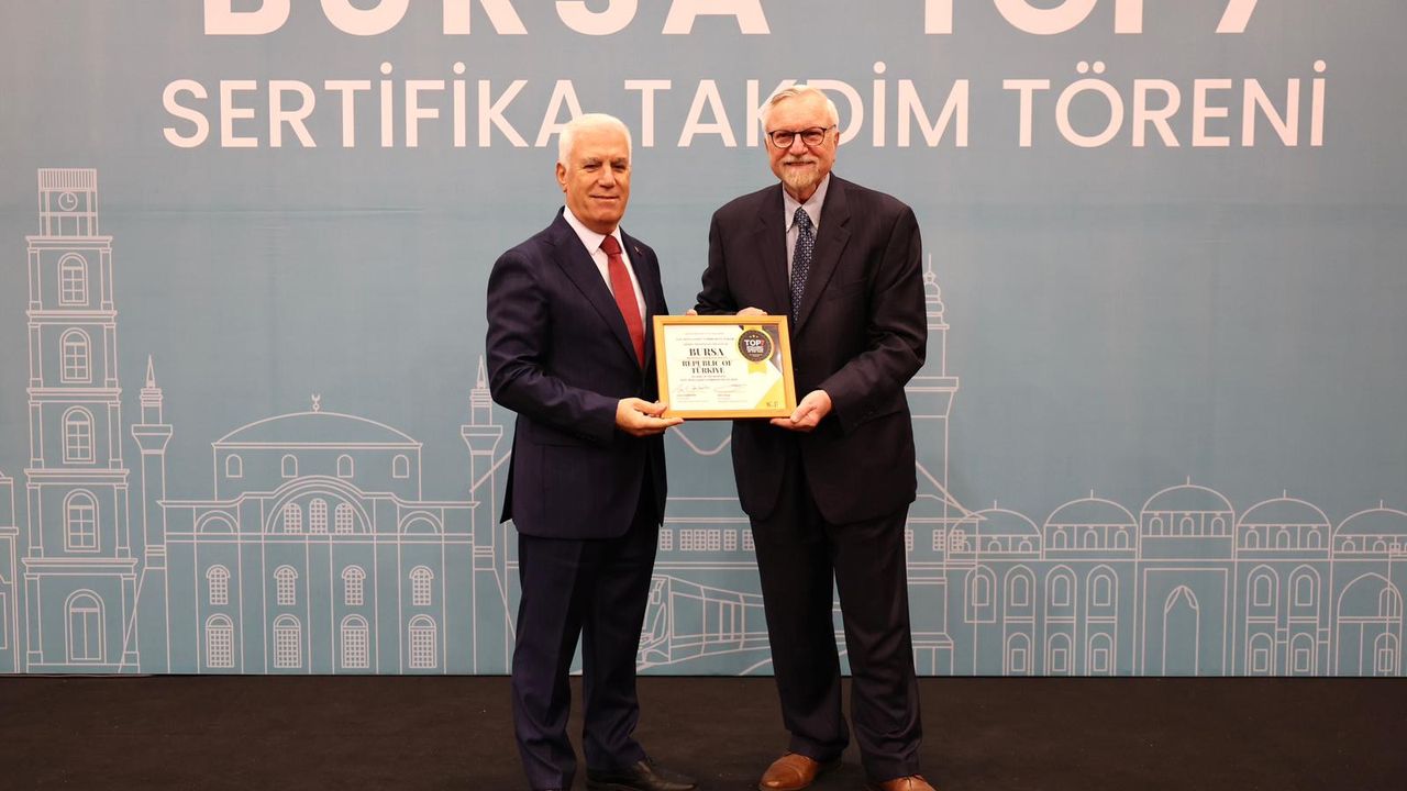 BURSA – Büyükşehir Belediyesi’nin akıllı şehircilikte yaptığı çalışmalarla Bursa, dünyanın en akıllı 7 kenti arasına seçilerek Türkiye adına tarihi bir başarıya imza attı. ‘Top 7’ sertifikasını ICF Kurucu Ortağı John G. Jung’un elinden alan Başkan Mustafa Bozbey, “Bu başarı yalnızca Bursamızın değil, ülkemizin de gururudur. Bursamız Türkiye’de bu başarıyı elde eden ilk şehir oldu. Hedefimiz, bu başarıyı ileriye taşıyarak Bursamıza, ‘Yılın Akıllı Topluluğu’ unvanını kazandırmaktır” dedi.