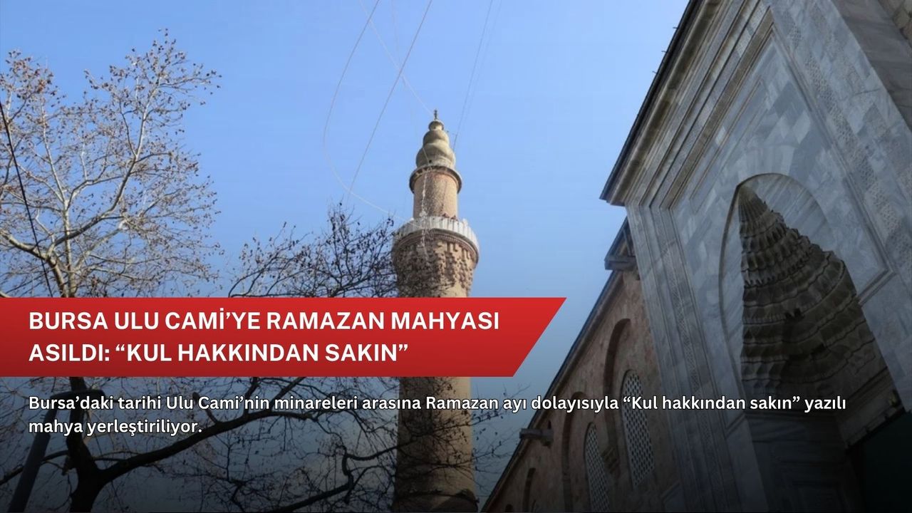 Bursa’nın simge yapılarından biri olan Ulu Cami’de Ramazan hazırlıkları kapsamında mahya asım çalışmalarına başlandı. İki minare arasına yerleştirilen ve 70 metrelik mesafeye kurulan mahyada “Kul hakkından sakın” ifadesi yer alacak.