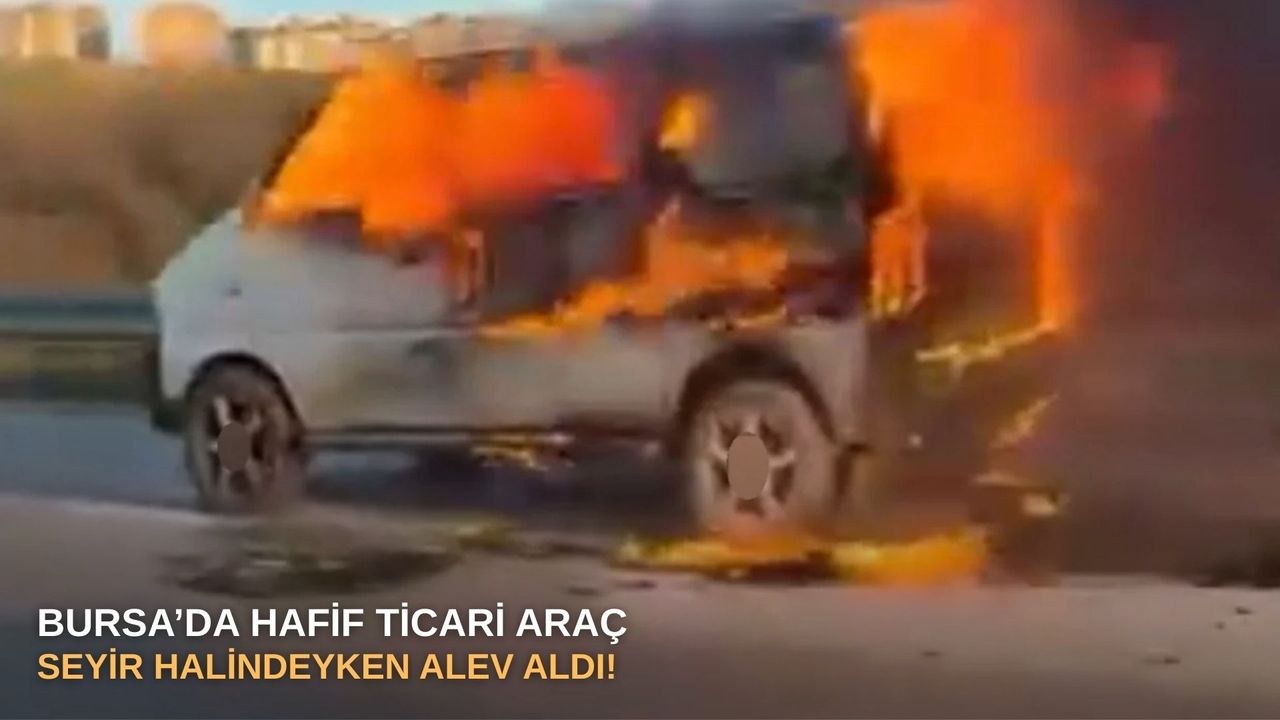 Bursa Nilüfer çevre yolunda seyir halinde olan hafif ticari araç, henüz bilinmeyen bir sebeple motor bölümünden alev aldı. Durumu fark eden sürücü, aracını yol kenarına çekerek 112 Acil Çağrı Merkezi’ni aradı.