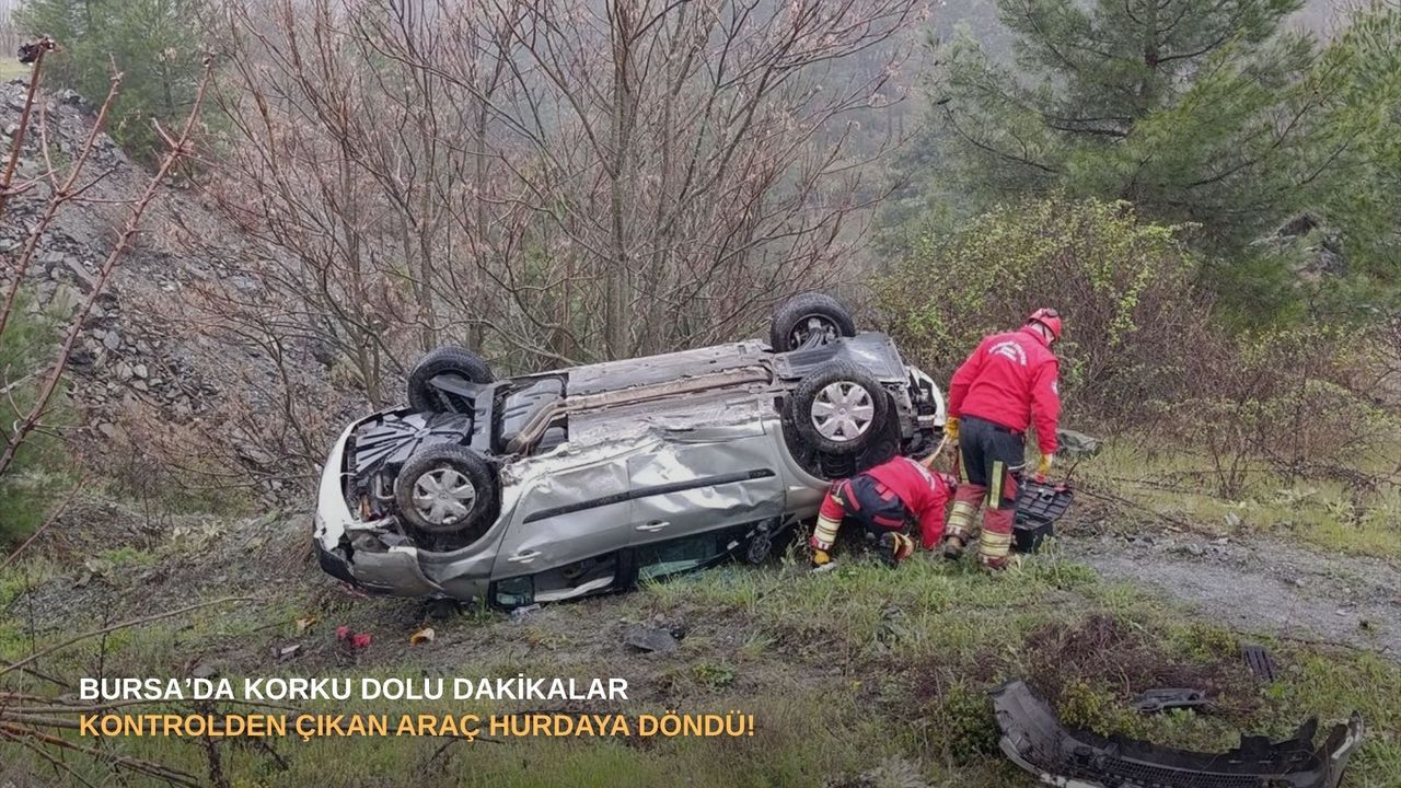 Bursa ile Kütahya’yı birbirine bağlayan kara yolunda akşam saatlerinde korku dolu anlar yaşandı. Sürücüsünün kimliği ve plakası henüz belirlenemeyen bir otomobil, seyir halindeyken aniden kontrolden çıktı. Yoldan çıkan araç, taklalar atarak devrildi.