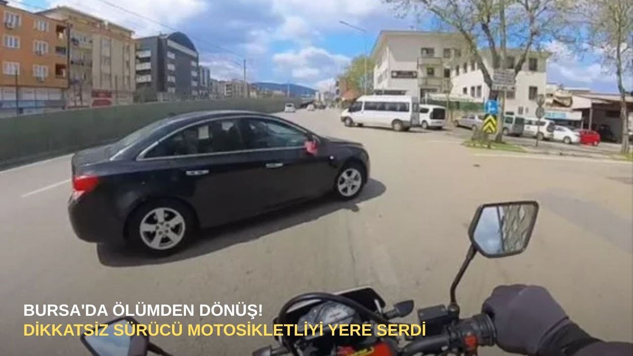 Bursa’da sabah saatlerinde korku dolu bir trafik kazası yaşandı. Kendi şeridinde normal seyrinde ilerleyen bir motosikletli, orta şeritten aniden sağ tarafa yönelen otomobili fark edemedi. Otomobilin kontrolsüz şekilde şeridine girmesiyle birlikte çarpışma kaçınılmaz oldu.