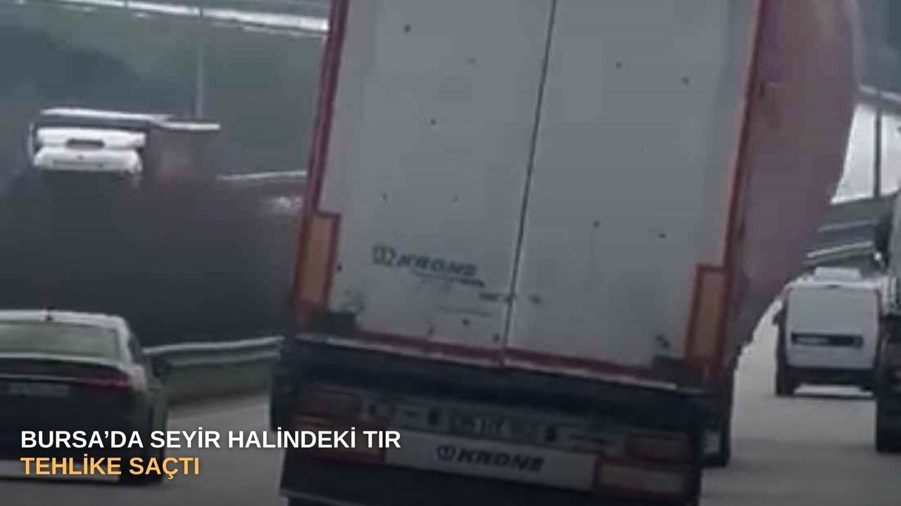 Merkez Nilüfer ilçesi Bursa Çevre Yolu üzerinde meydana gelen olayda, dengesini kaybeden tır zaman zaman devrilme tehlikesi geçirdi. Diğer sürücüler şaşkınlıkla yaşananları izlerken, bazı kişiler o anları kayda aldı. Trafikte kısa süreli tedirginliğe neden olan tırın ilerleyişi sürücülere zor anlar yaşattı.