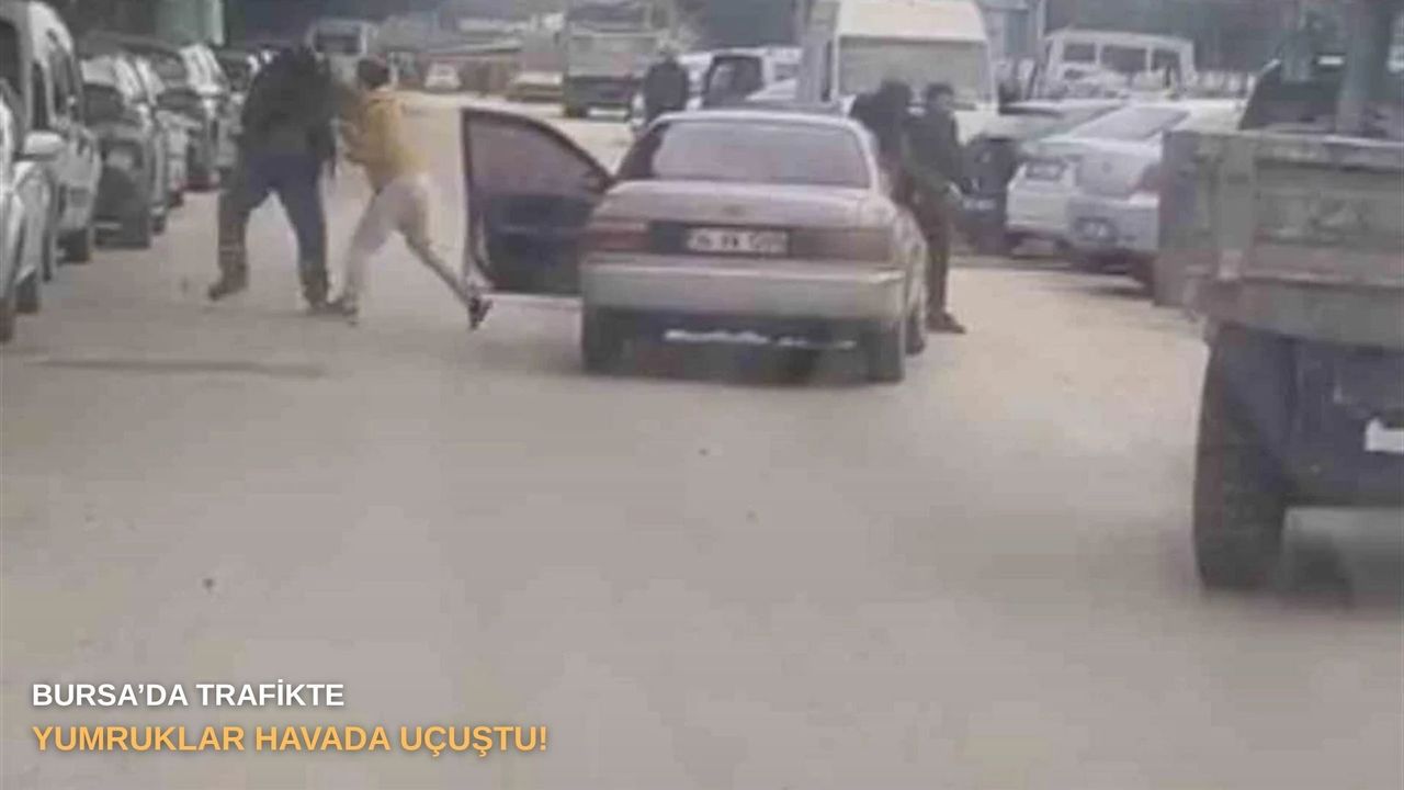 Bursa’nın Nilüfer ilçesinde trafikte yaşanan tartışma, adeta bir boks maçını aratmayan kavga ile sonuçlandı. İki sürücü araçlarından inerek birbirine yumruk attı. O anlar çevredeki vatandaşlar tarafından cep telefonlarıyla kaydedildi ve sosyal medyada paylaşıldı.