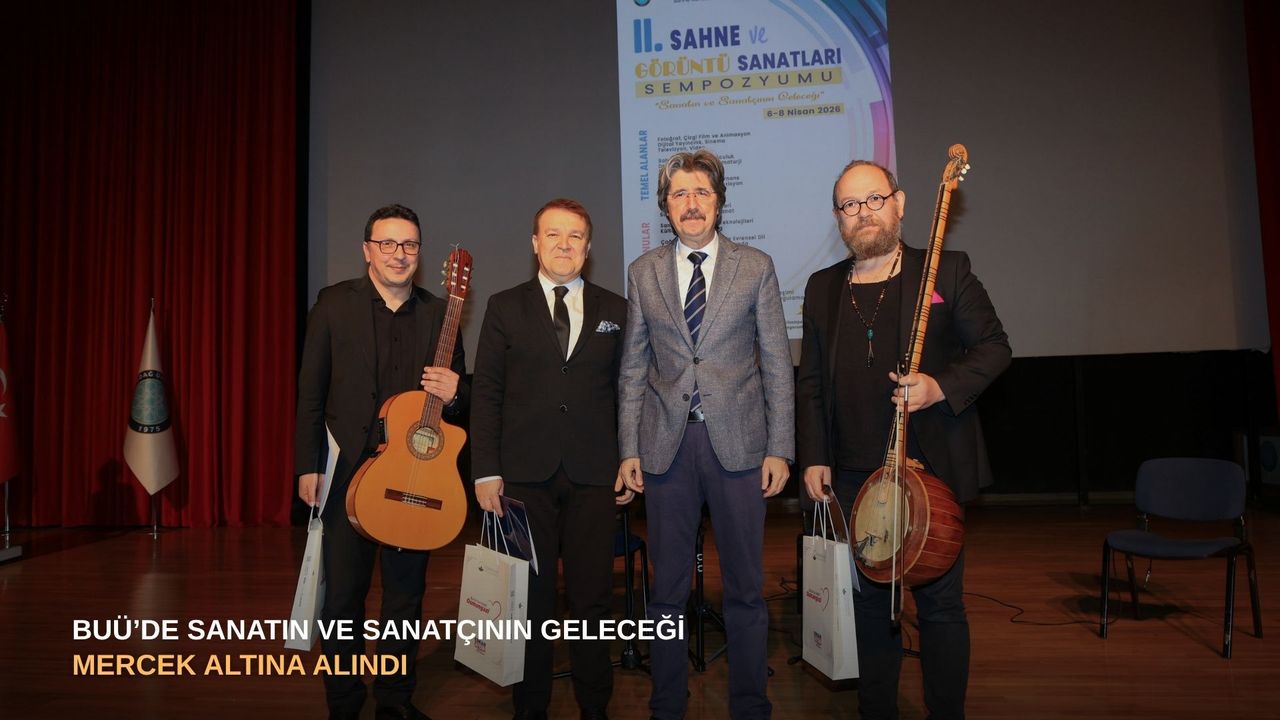 Program kapsamında düzenlenen törende konuşan BUÜ Rektörü ve Sempozyum Onursal Başkanı Prof. Dr. Ferudun Yılmaz, araştırma üniversiteleri arasındaki yarışın genellikle sosyal bilimler ve sanat alanındaki faaliyetleri ihmal eden bir görüntü sergilediğini ifade etti. Uluslararası sıralama kriterlerinin sanat alanındaki birikimi tam olarak yansıtamamasının, bu alanlarda emek veren akademisyen ve öğrencilerde bir değersizlik hissi yaratmaması gerektiğini vurgulayan Prof. Dr. Ferudun Yılmaz, üniversite kurumunun insan ediminin tüm zenginliğini bünyesinde barındıran bir yapı olduğunu belirtti. Bilimsel ve teknolojik ilerlemenin sanatın doğasını dönüştürdüğüne dikkat çeken Yılmaz, yapay zeka ve dijital teknolojilerin sunduğu imkanların yanı sıra insani varoluş açısından barındırdığı kaygılara da değindi. Konuşmasının sonunda sanatın insan kalabilmenin yegane yolu olduğunu hatırlatan Rektör Yılmaz, dünyanın distopyaya savrulduğu bir dönemde umudun ancak sanatsal faaliyetlerden neşet edebileceğini ve üniversite olarak bu düşünsel zemine katkı sunmaya devam edeceklerini önemle vurguladı.