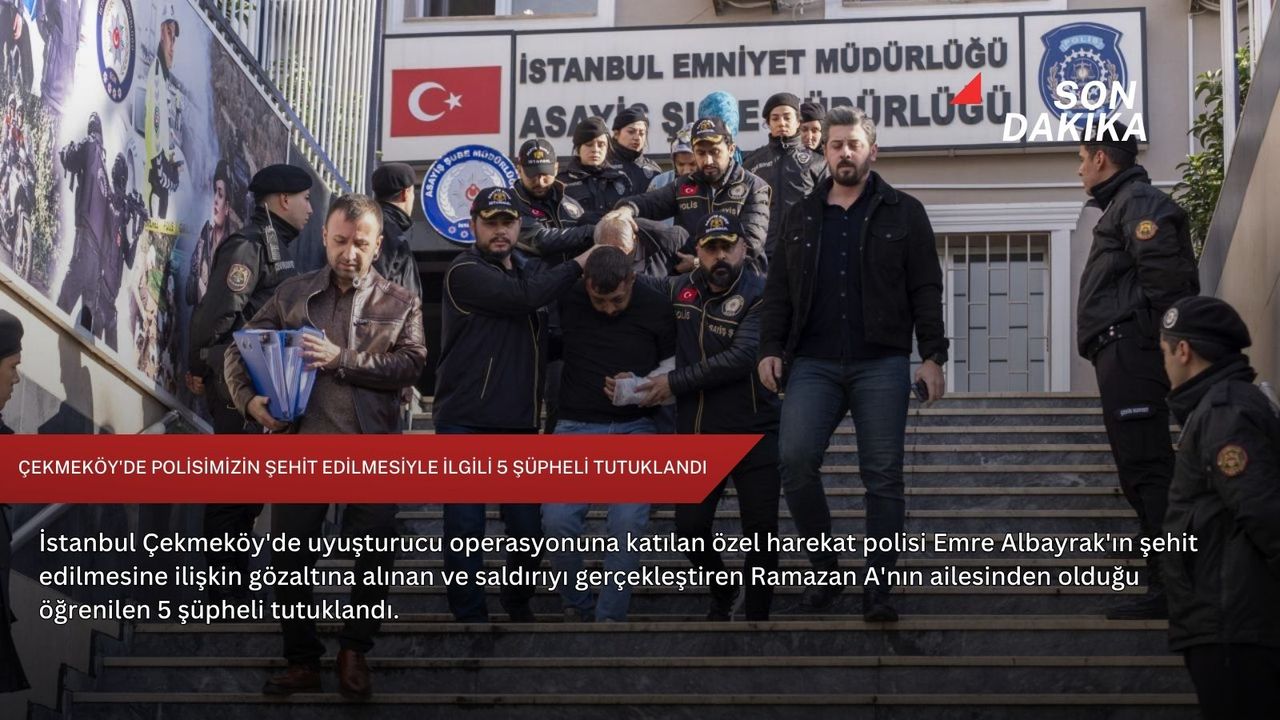 Çekmeköy'deki bir eve 8 Aralık'ta düzenlenen narkotik operasyonunda açılan ateş sonucu ağır yaralanan 27 yaşındaki polis memuru Emre Albayrak'ın kaldırıldığı hastanede şehit olmasına ilişkin gözaltına alınan 5 kişinin, Asayiş Şube Müdürlüğü Cinayet Büro Amirliğindeki işlemleri tamamlandı.