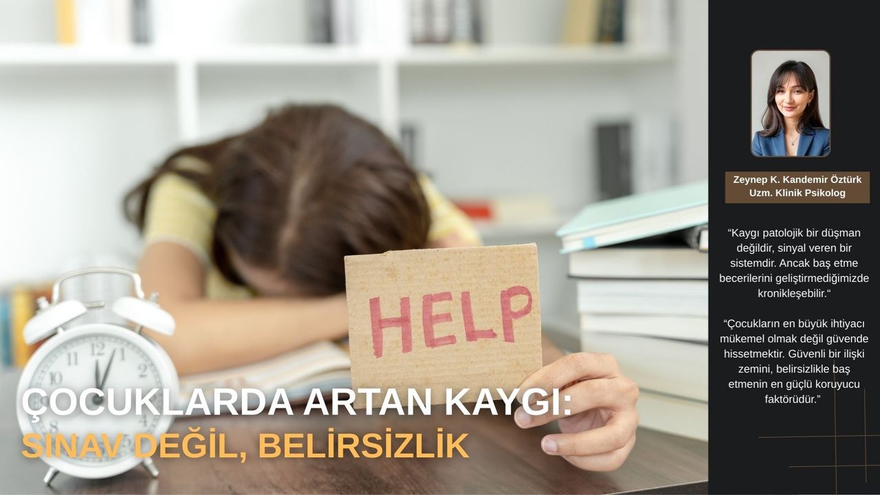 Eskiden kaygı daha çok "Sınavda başarılı olabilecek miyim?" sorusu etrafında şekillenip sınav kaygısı gözlemlenirken, günümüzde çocuk ve ergenlerin zihinlerinde çok daha büyük sorular var: