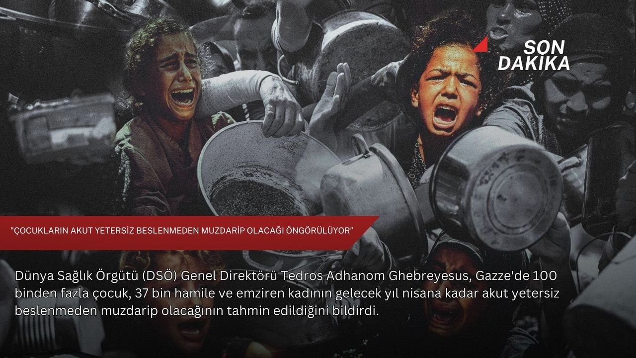 Ghebreyesus, "(Gazze'de) 100 binden fazla çocuk, 37 bin hamile ve emziren kadının gelecek yıl nisana kadar akut yetersiz beslenmeden muzdarip olacağı tahmin ediliyor." ifadesini kullandı.