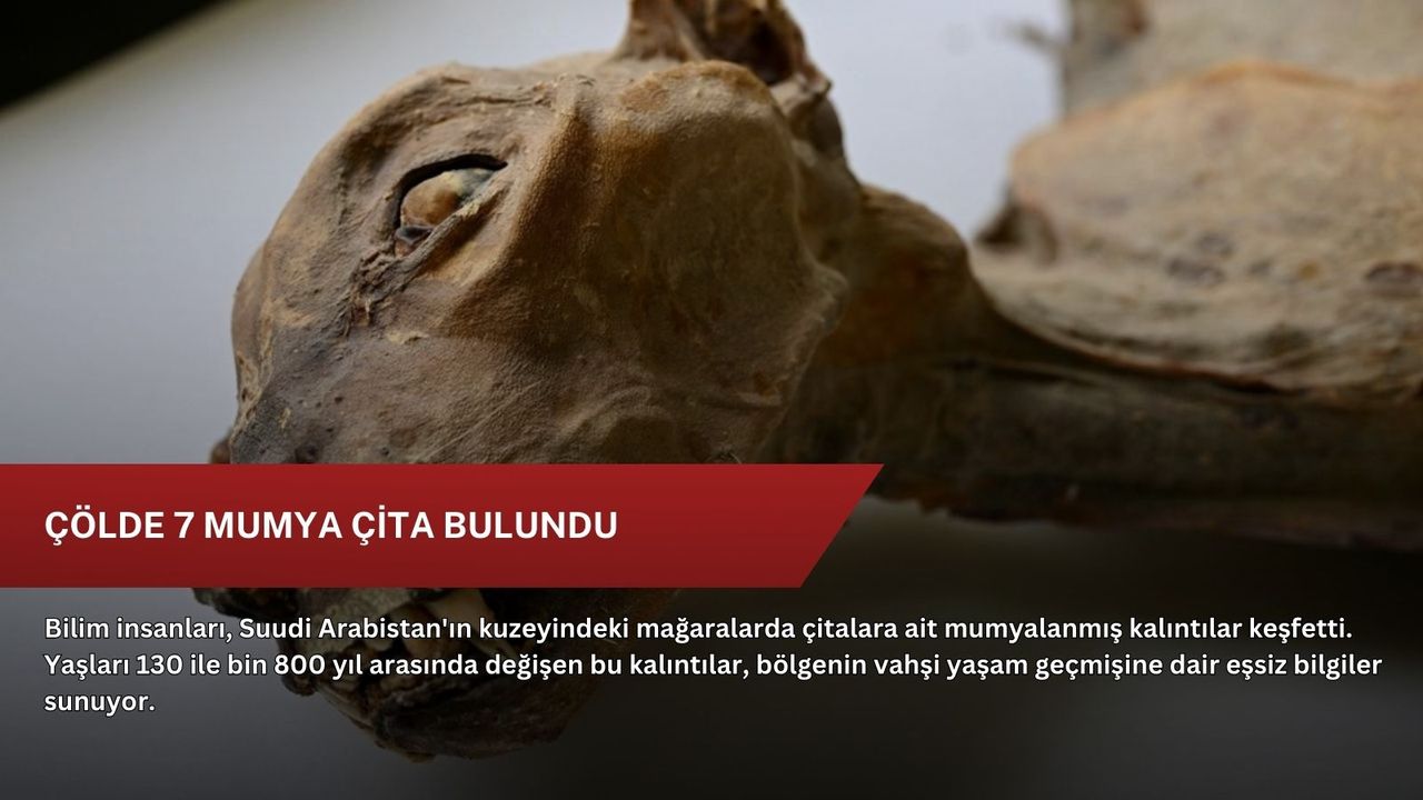 Arar şehri yakınlarındaki bir bölgede yürütülen kazılarda, 7 çita mumyasının yanı sıra 54 başka çitaya ait kemikler de gün yüzüne çıkarıldı.