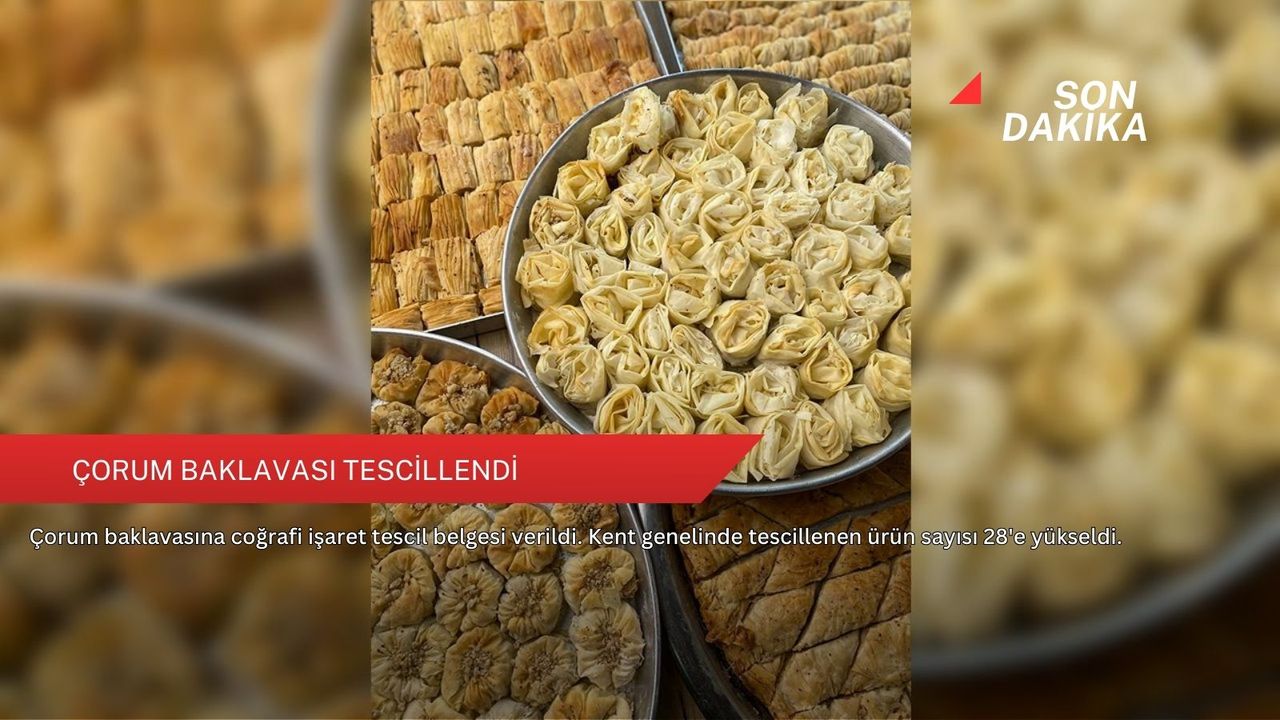 Çorum baklavası için 23 Şubat 2024'te Türk Patent ve Marka Kurumuna (TÜRKPATENT) coğrafi işaret tescili başvurusu yapıldı. Baklava, coğrafi işaret tesciliyle bir geleneksel lezzet resmi olarak koruma altına alındı.
