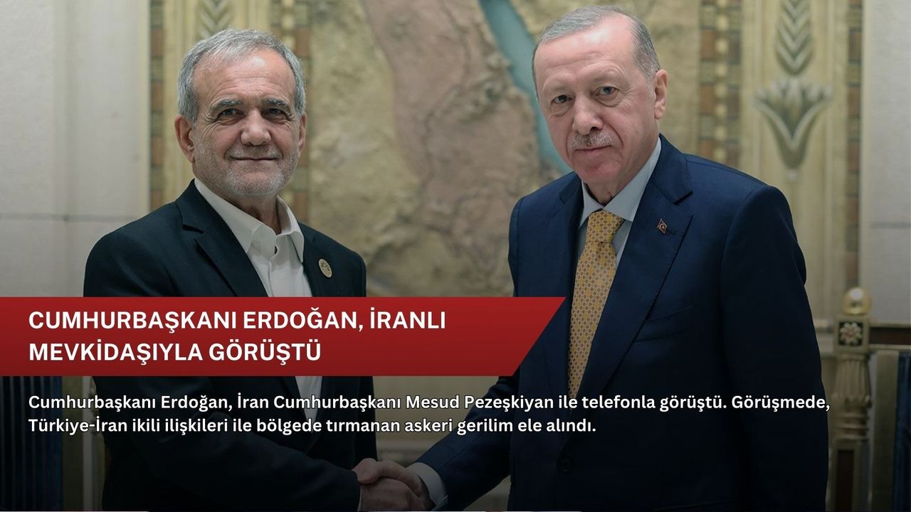 İletişim Başkanlığı'ndan yapılan açıklamada, Cumhurbaşkanı Erdoğan ile İran Cumhurbaşkanı Pezeşkiyan görüşmede, Türkiye - İran ikili ilişkileri ile bölgede tırmanan askeri gerilimi ele aldı.