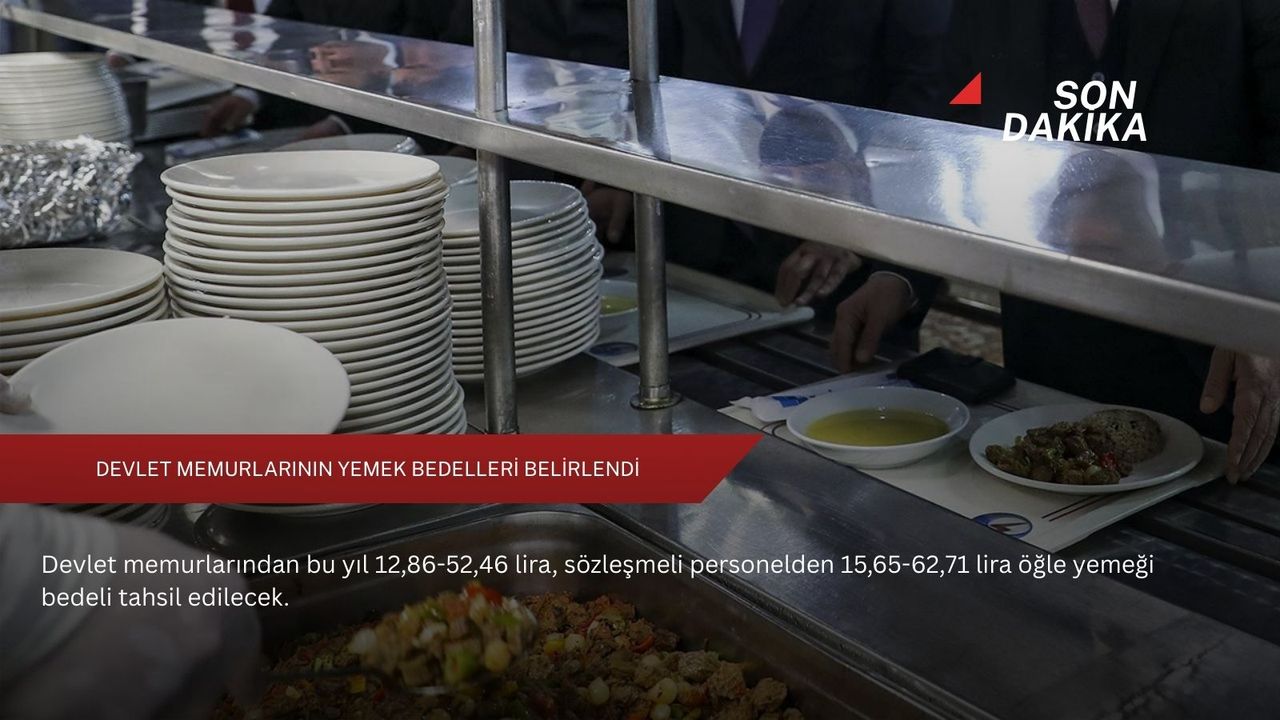 15 Ocak 2026'dan 14 Ocak 2027'ye kadar öğle yemeği servisinden faydalanacak memurlardan günlük 12,86 lira ile 52,46 lira arasında bedel tahsil edilecek. Sözleşmeli personel de aldıkları ücrete göre günlük 15,65 lira ile 62,71 lira arasında öğle yemeği bedeli ödeyecek.