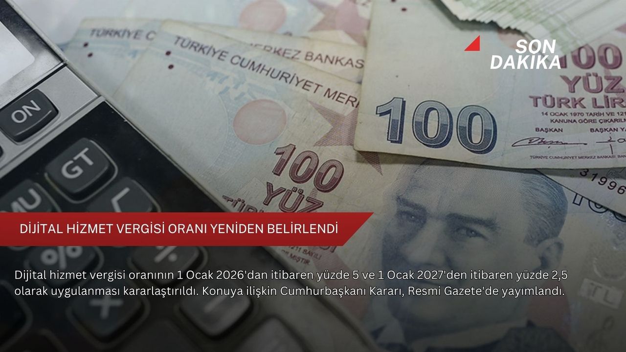 Yüzde 7,5 olarak uygulanan dijital hizmet vergisi oranı 1 Ocak 2026'dan itibaren yüzde 5'e, 1 Ocak 2027'den itibaren yüzde 2,5'e düşürülecek.